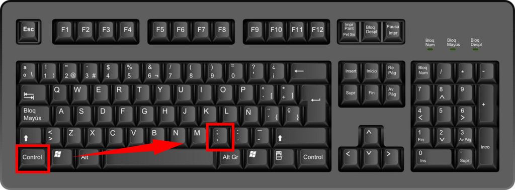 - Ctrl + ; (punto y coma) →