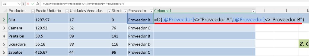 =O([@Proveedor]<>"Proveedor A",[@Proveedor]<>"Proveedor B")