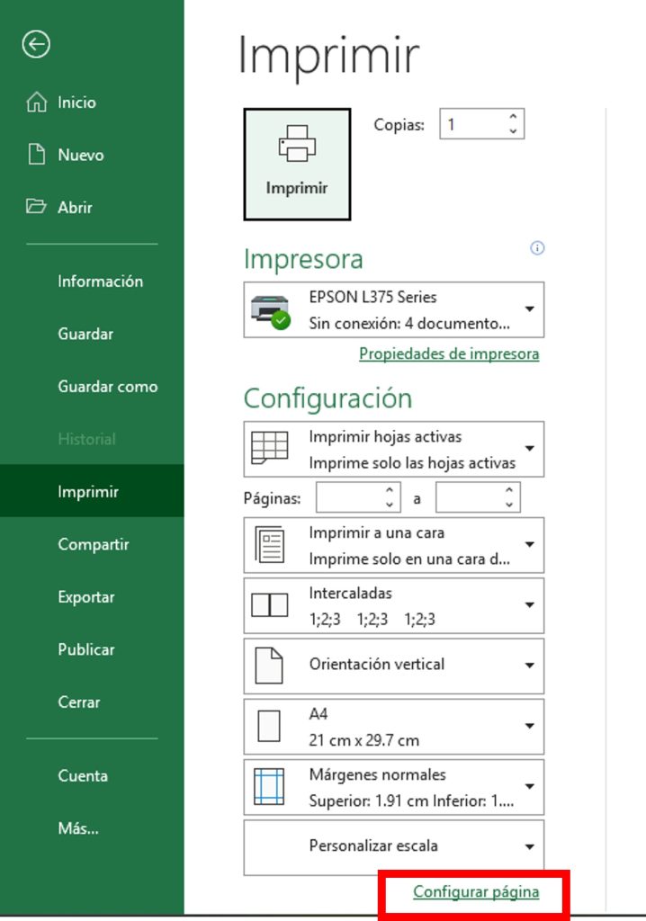 Dentro de Archivo → Imprimir, haz clic en Configurar página.
