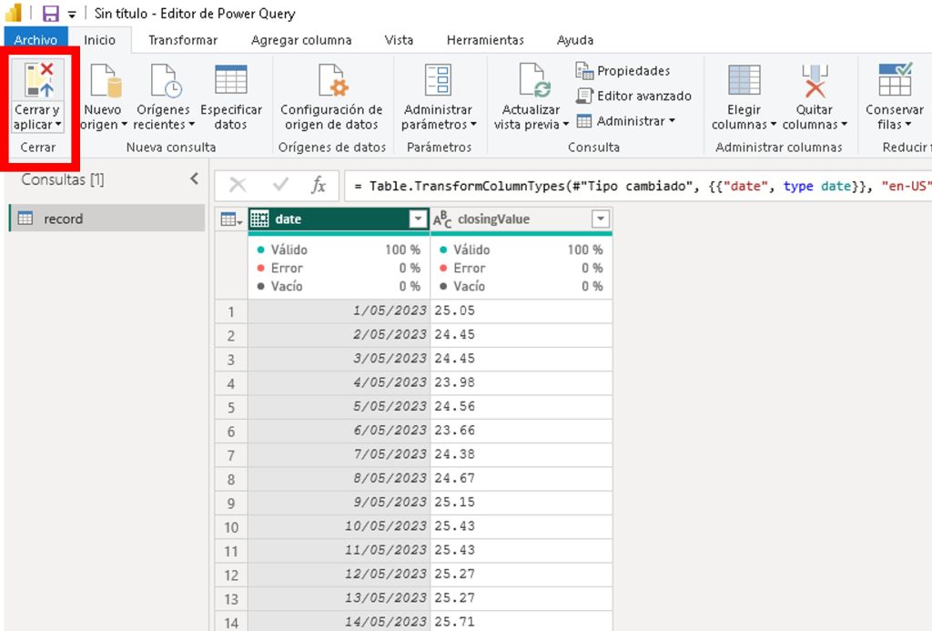 - Una vez corregidos los formatos, haz clic en Cerrar y Aplicar.