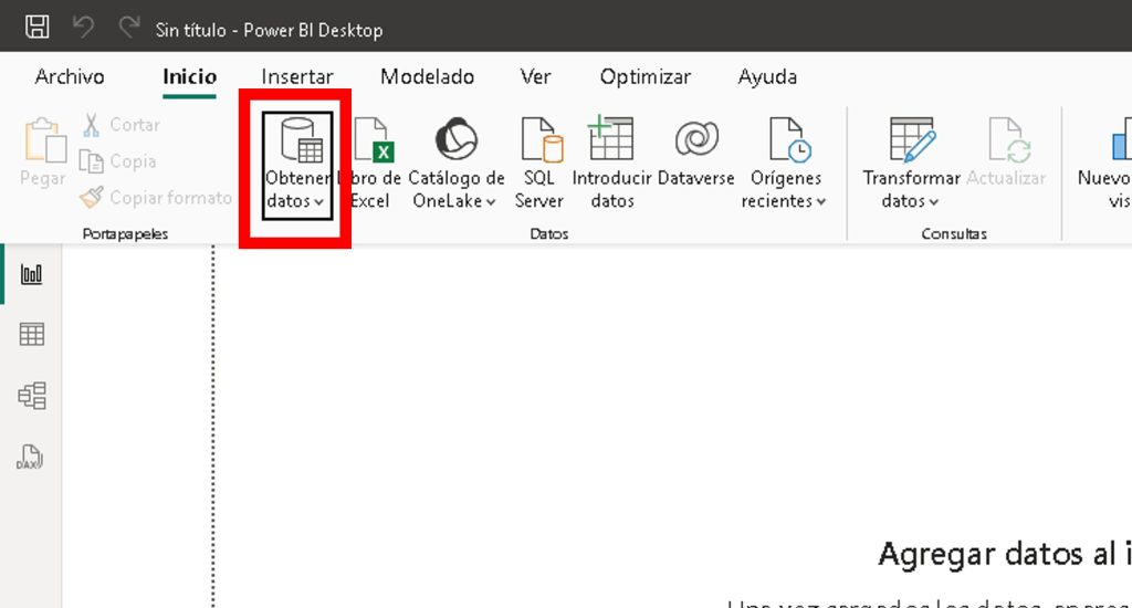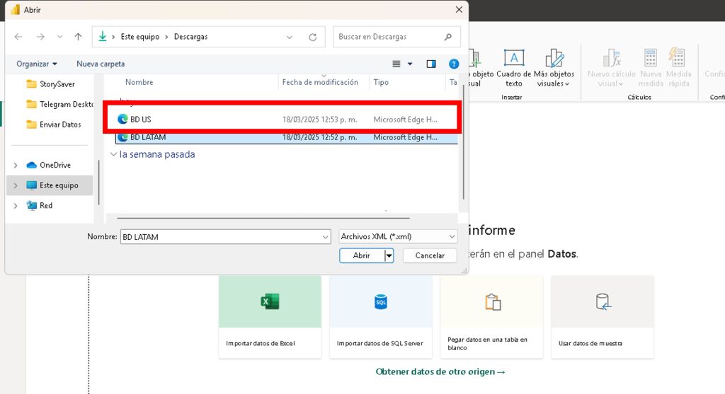 - Selecciona Obtener Datos y elige el formato de archivo (XML).