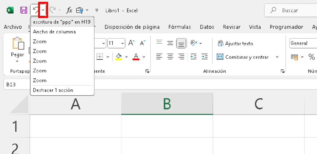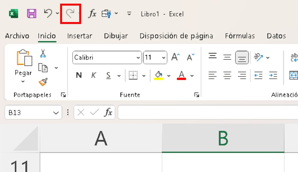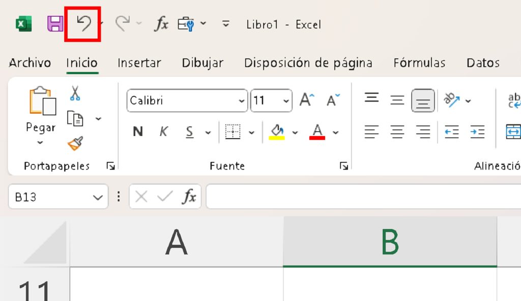 - Ícono con flecha hacia la izquierda (o Ctrl + Z).