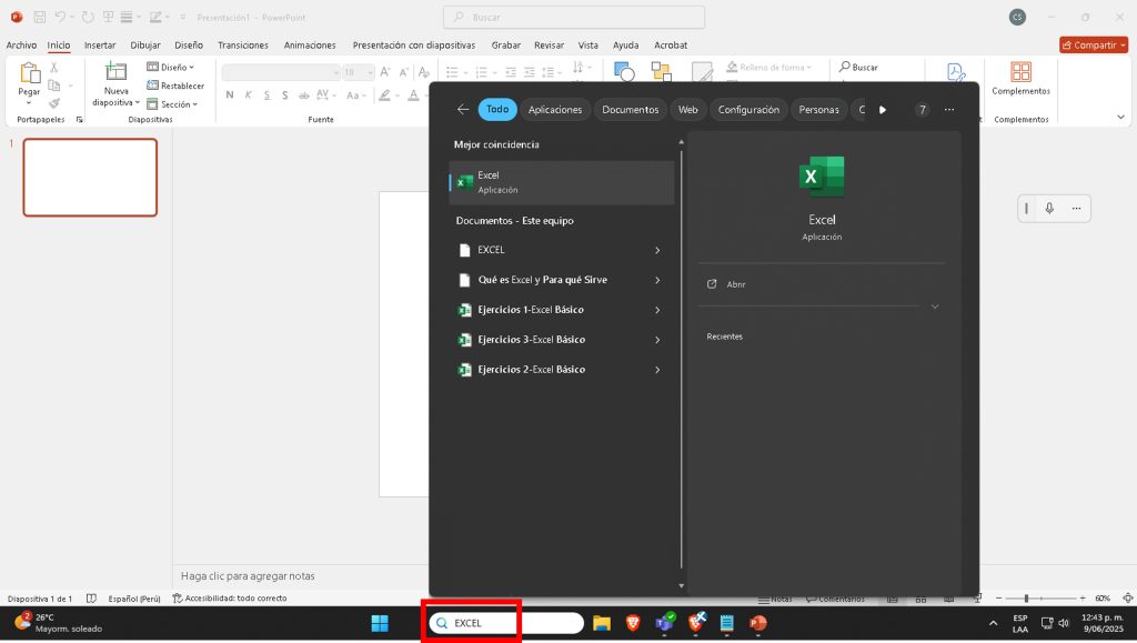 - Si Excel está anclado en la barra de tareas (ícono visible en la parte inferior), haz clic en él para abrirlo.