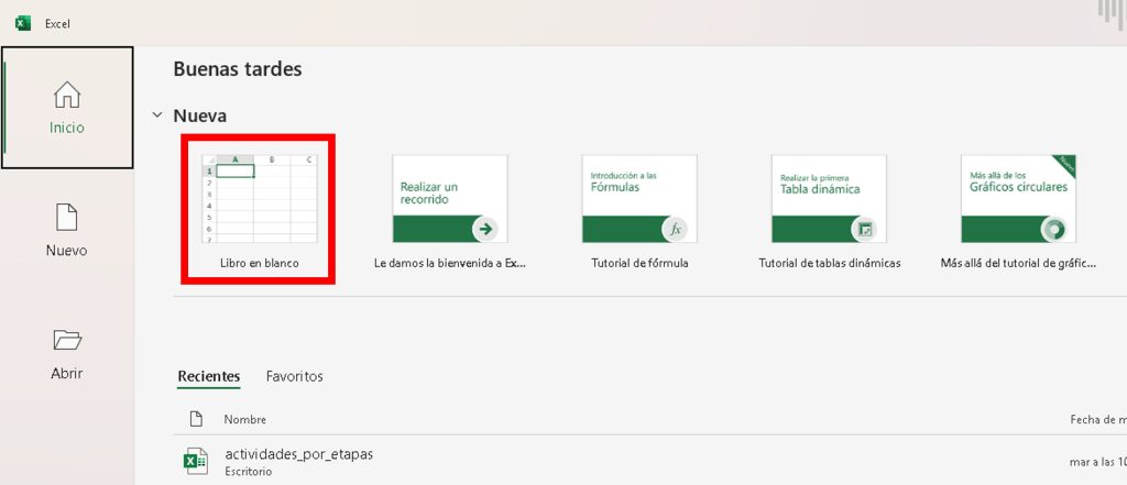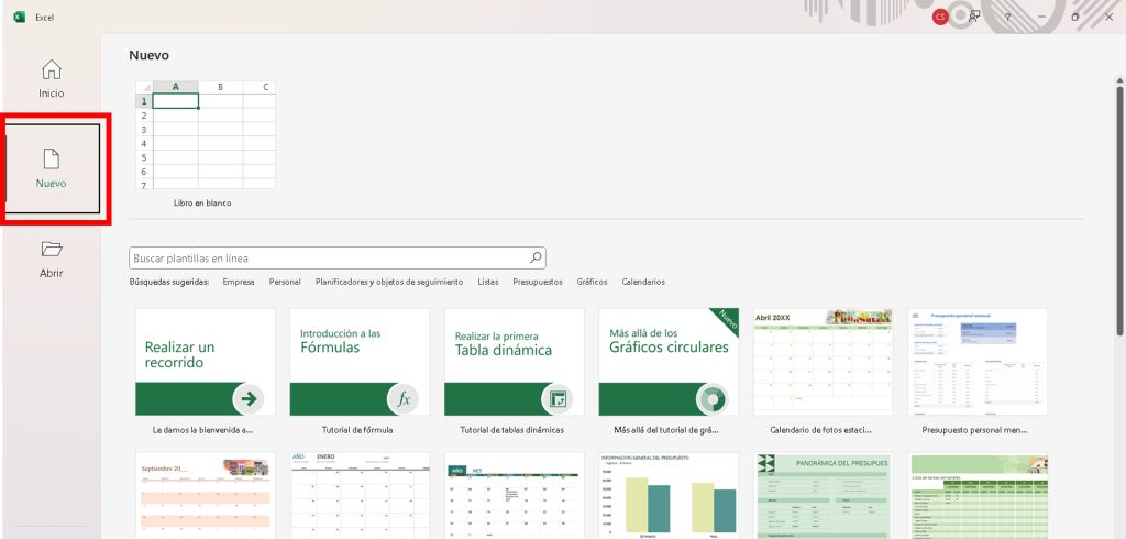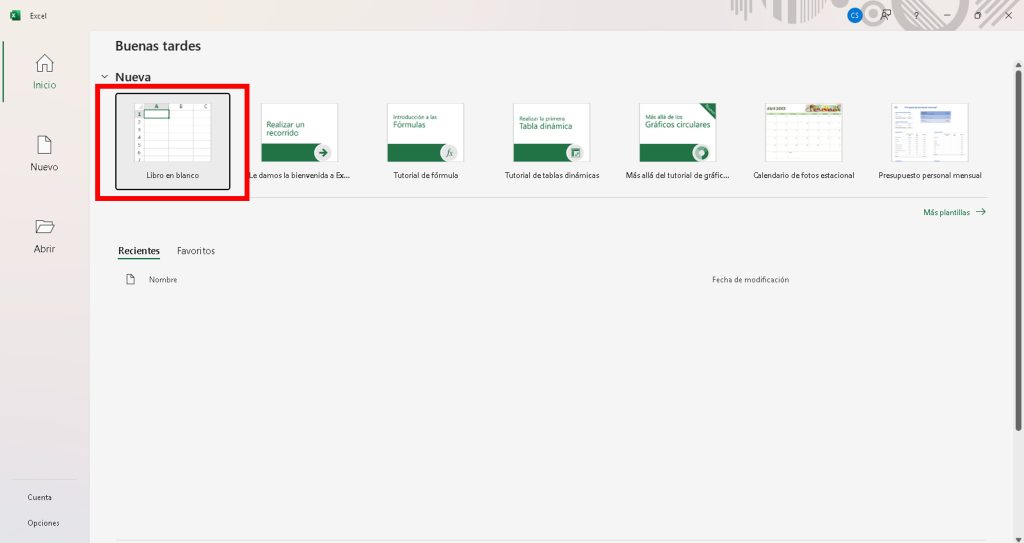 - Haz clic en Libro en Blanco para abrir una hoja de cálculo nueva desde cero, sin plantillas.