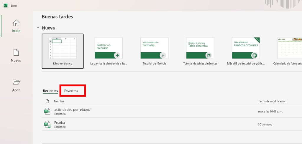 - Ve a Favoritos para acceder rápidamente al archivo sin buscarlo.