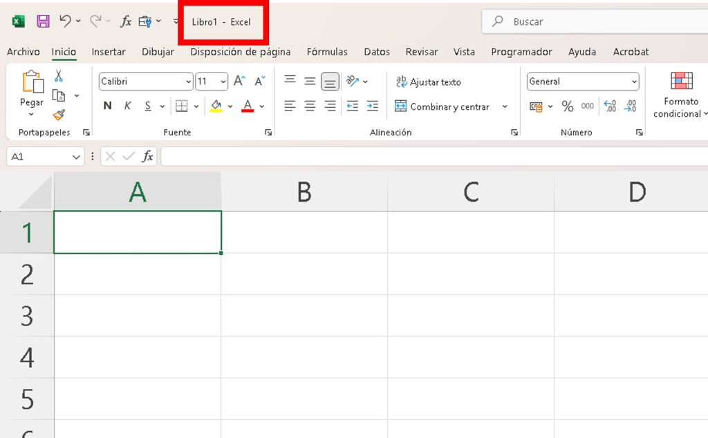 - Muestra el nombre del archivo (por ejemplo, Libro1 hasta que lo guardes).