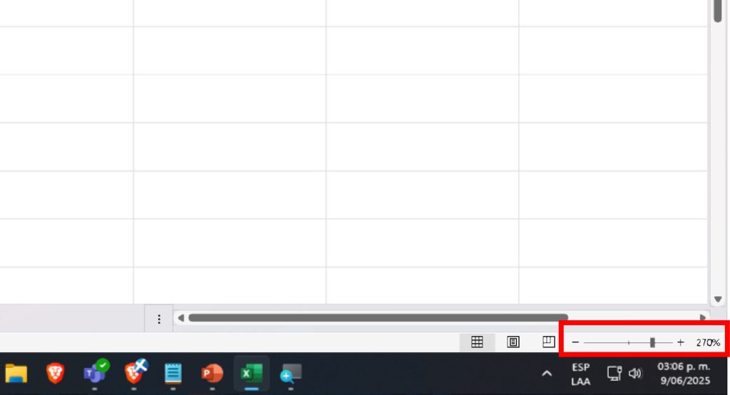 - Uso: Ajusta el zoom para ver mejor celdas, fórmulas o texto.