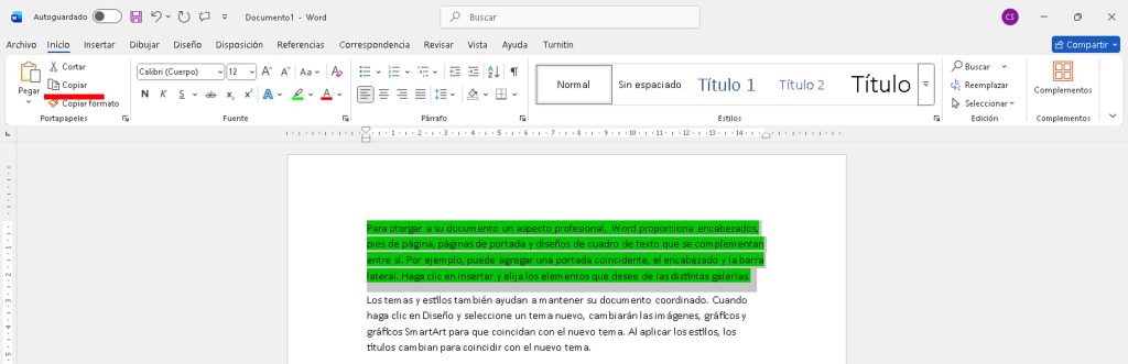 - Clic en Copiar formato (brocha en cinta Inicio).
