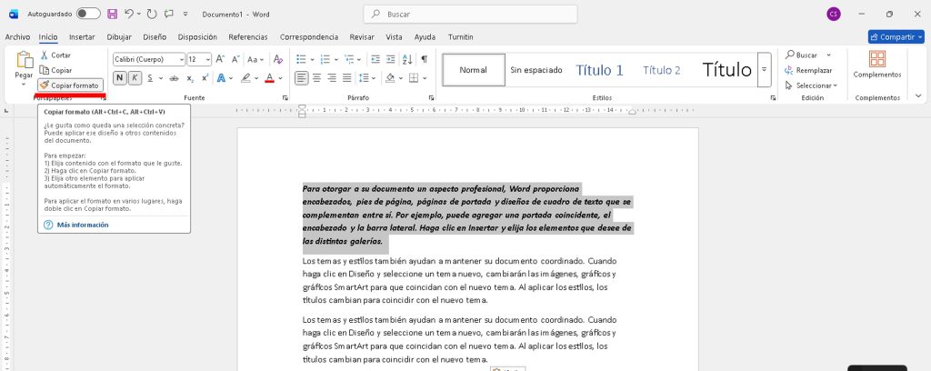 - Selecciona otro texto → Formato se aplica automáticamente.