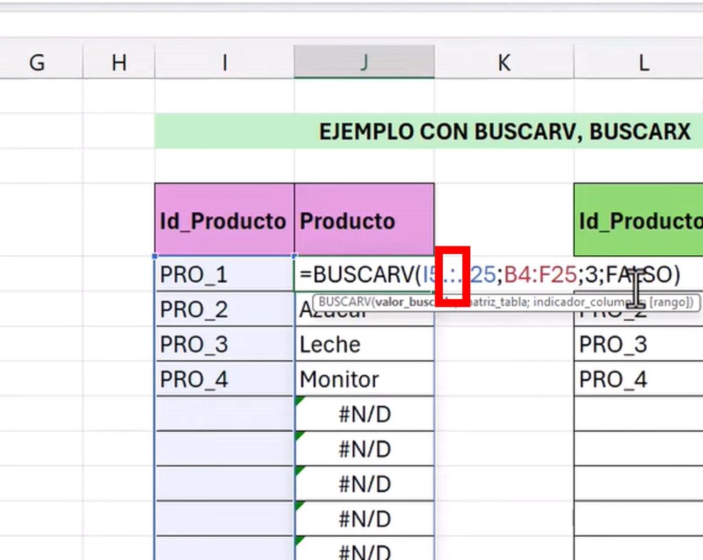 - Problema: =BUSCARV(I5:I25,B4:F25,3,FALSO)