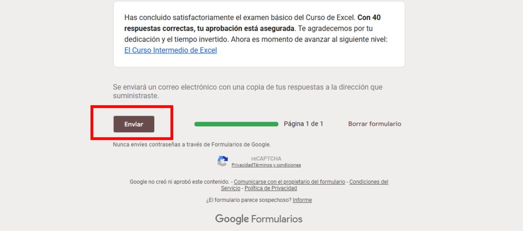 Después de responder todas las preguntas, solo debes presionar el botón Enviar para registrar tus respuestas.