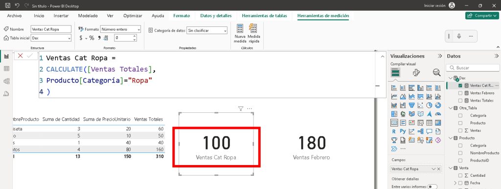 Paso 3: Filtrar ventas por categoría ropa con CALCULATE 👕