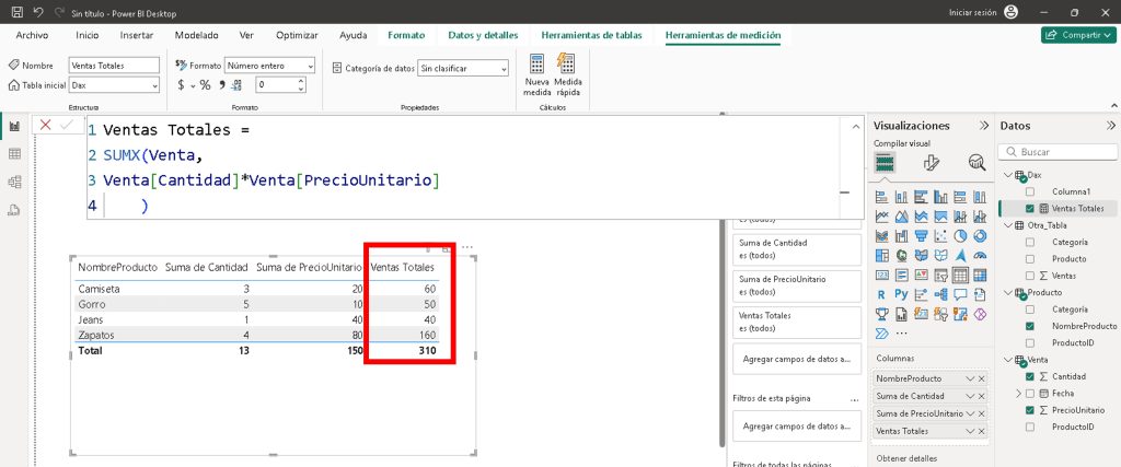 Paso 1: Crear una medida base con SUMX ➕