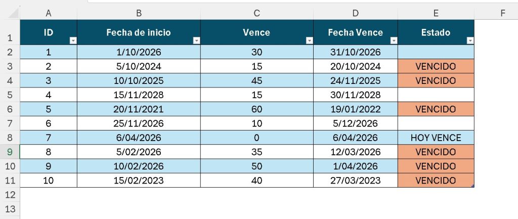 Cuando trabajas con fechas en Excel, es importante saber cuándo un plazo ya venció o está por vencer.