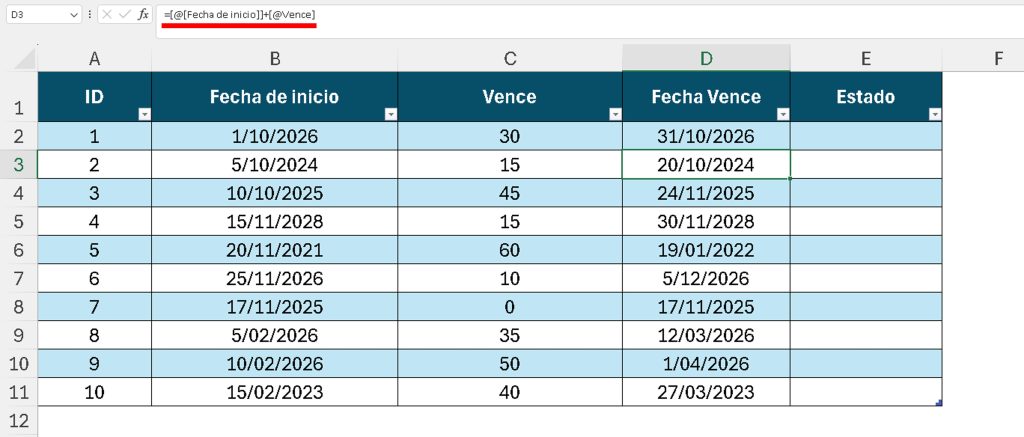 Calcular la fecha de vencimiento automáticamente