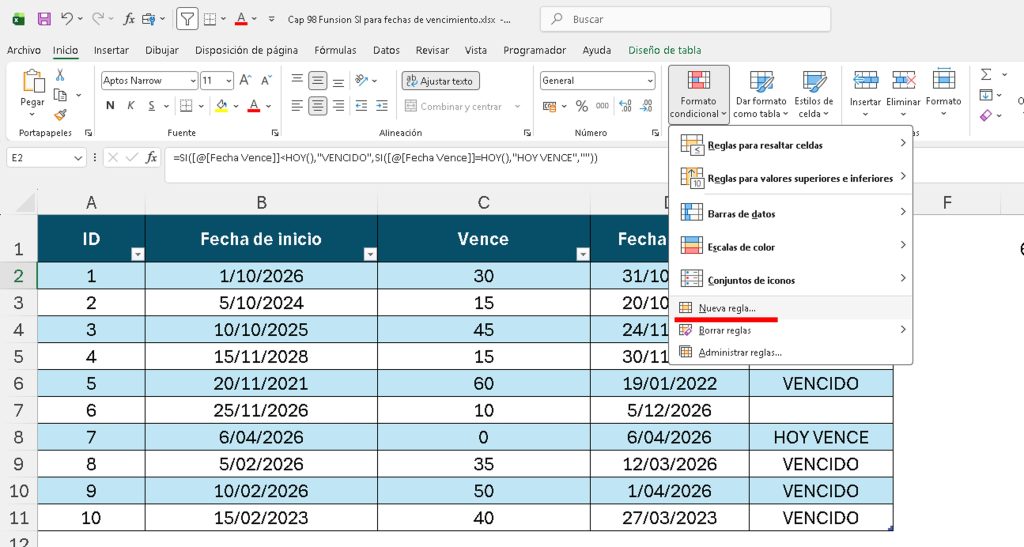 Capítulo 98: Función Si con alerta de fechas (Vencimiento)