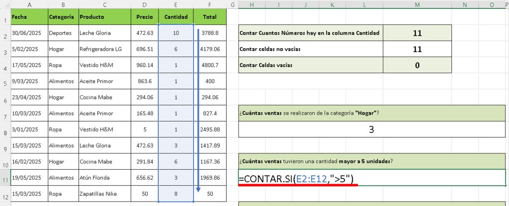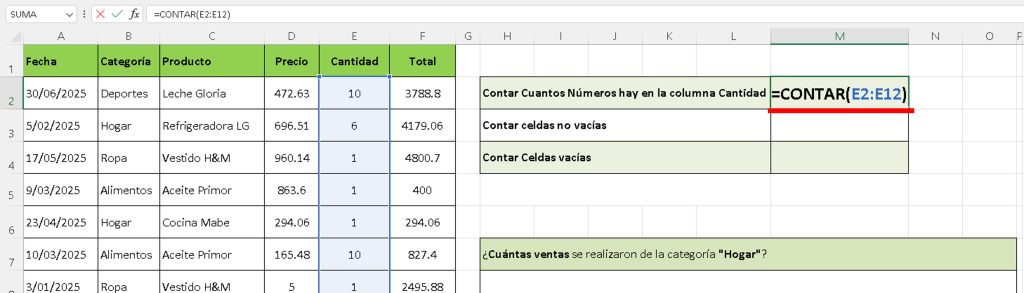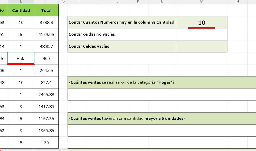 - Nota: CONTAR solo cuenta números, ignora textos y celdas vacías. 🌟