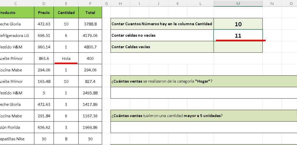 - Nota: CONTARA cuenta cualquier contenido, excepto celdas vacías. 🚀