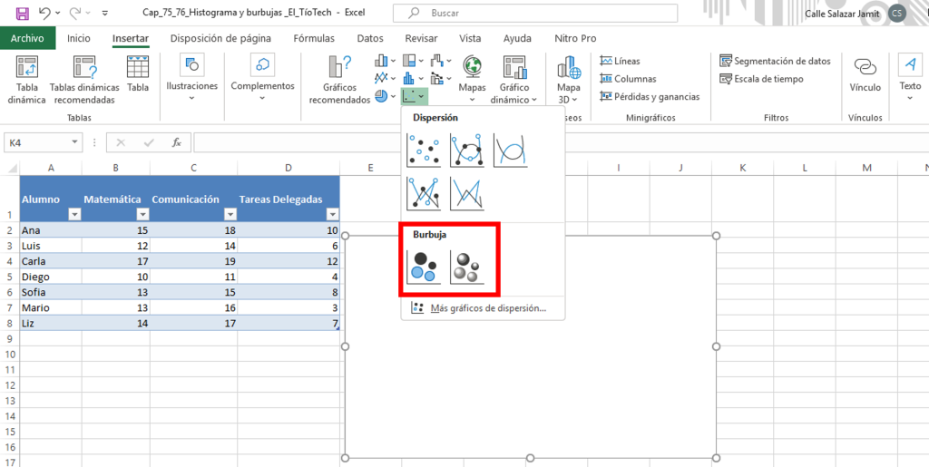 - Selecciona el gráfico de burbujas.