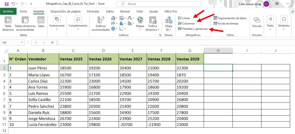 Capítulo 80: Gráficos en celdas (Minigráficos)