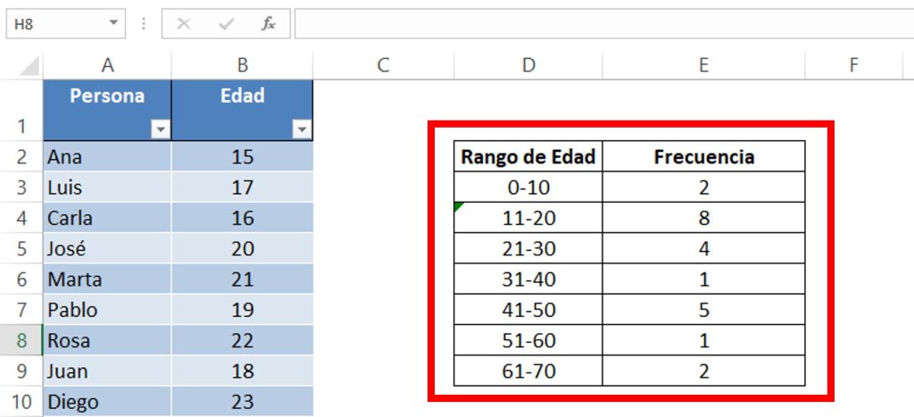 Esta tabla indica cuántas personas pertenecen a cada rango.