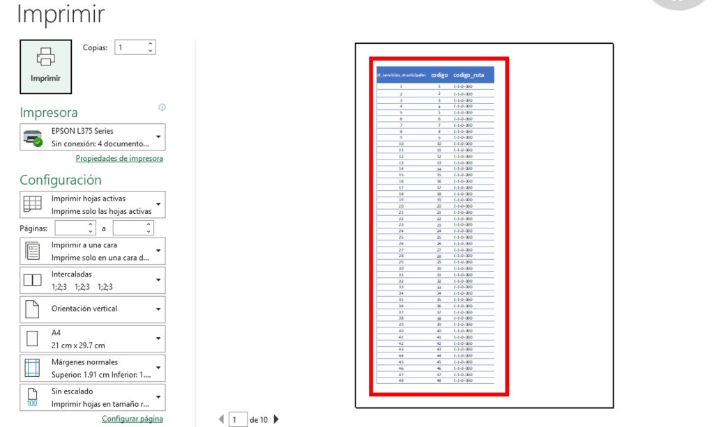 En muchos casos notarás que la tabla aparece dividida en varias páginas o que parte del contenido se corta.