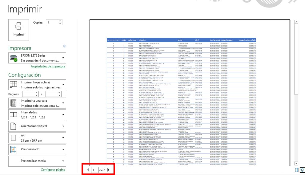 Una vez aplicada la configuración, vuelve a Archivo → Imprimir para revisar la vista previa.