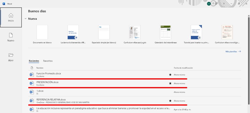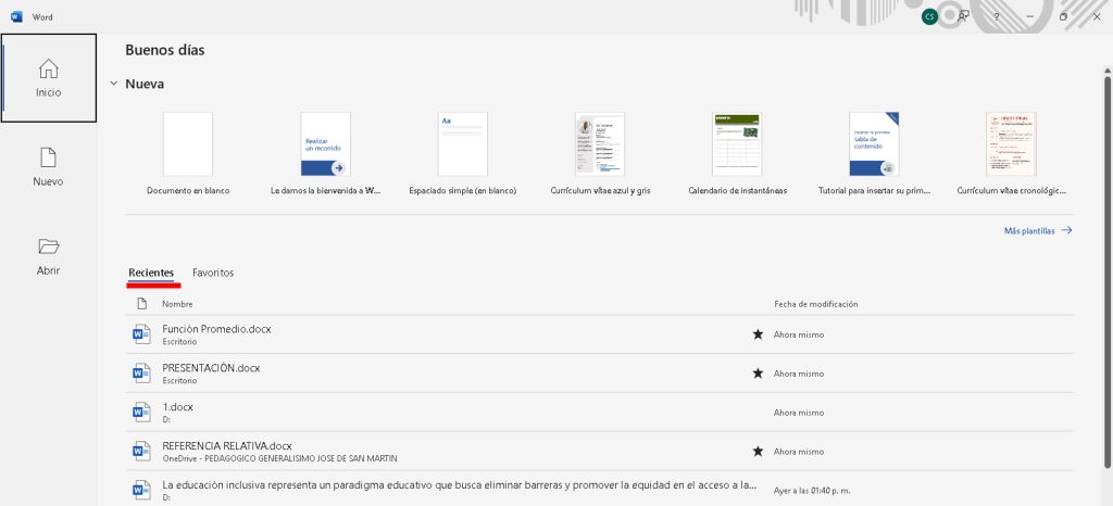 - Resultado: Accede a la interfaz principal de Word para editar texto.