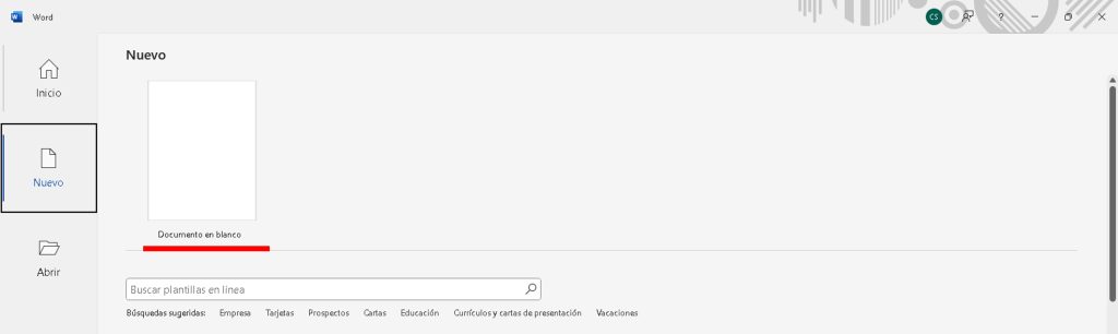 - Ve a Nuevo > Selecciona Documento en blanco.