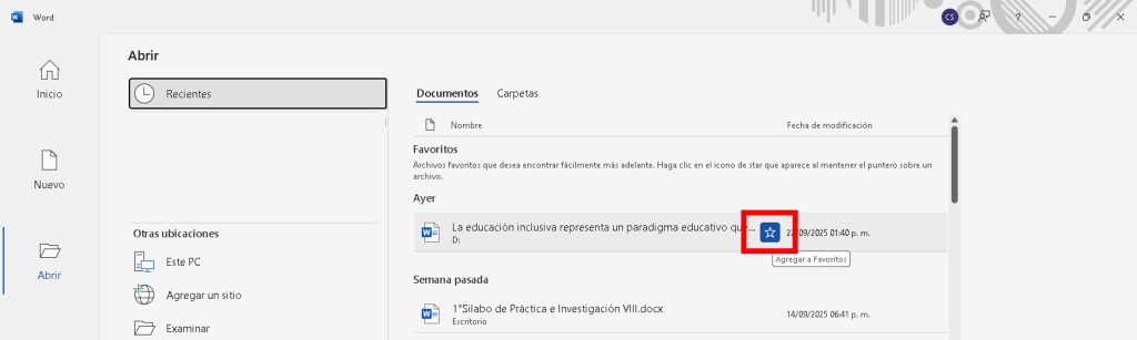 - Resultado: Aparece en la pestaña Anclado para acceso rápido, sin importar la fecha de modificación.