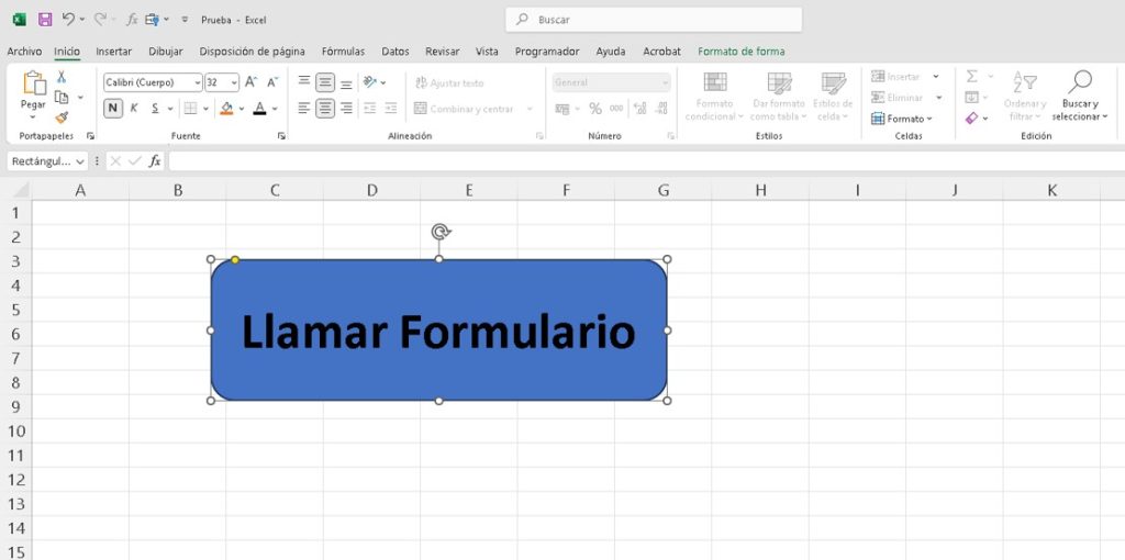 - Regresa a Excel, haz clic en el botón Llamar Formulario.