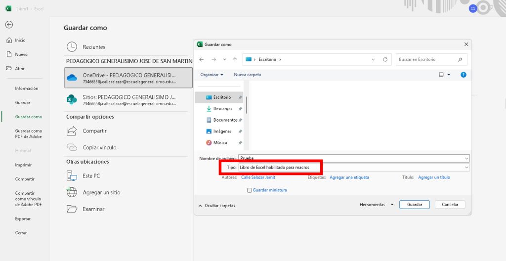 - En Tipo, selecciona Libro de Excel habilitado para macros.