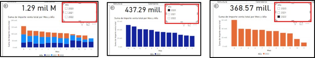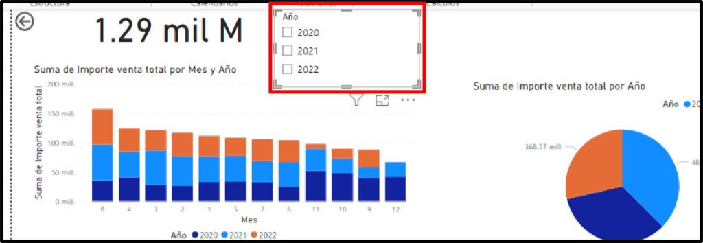 - Al seleccionar un valor en el slicer, todos los gráficos en el dashboard se actualizarán para reflejar solo los datos correspondientes al filtro aplicado.