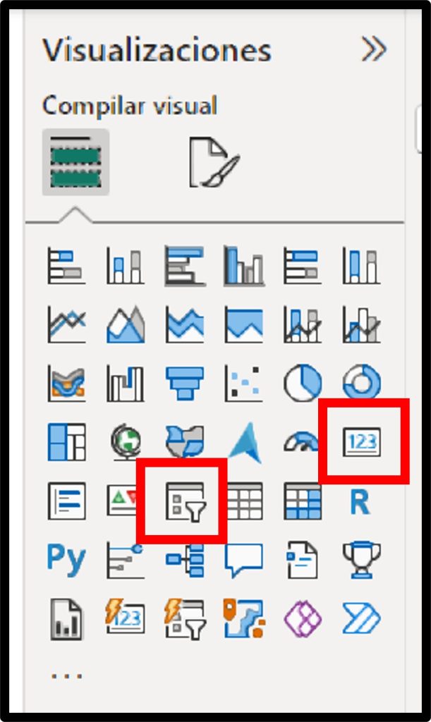 Visualizaciones de tipo Tarjetas y Slicer.